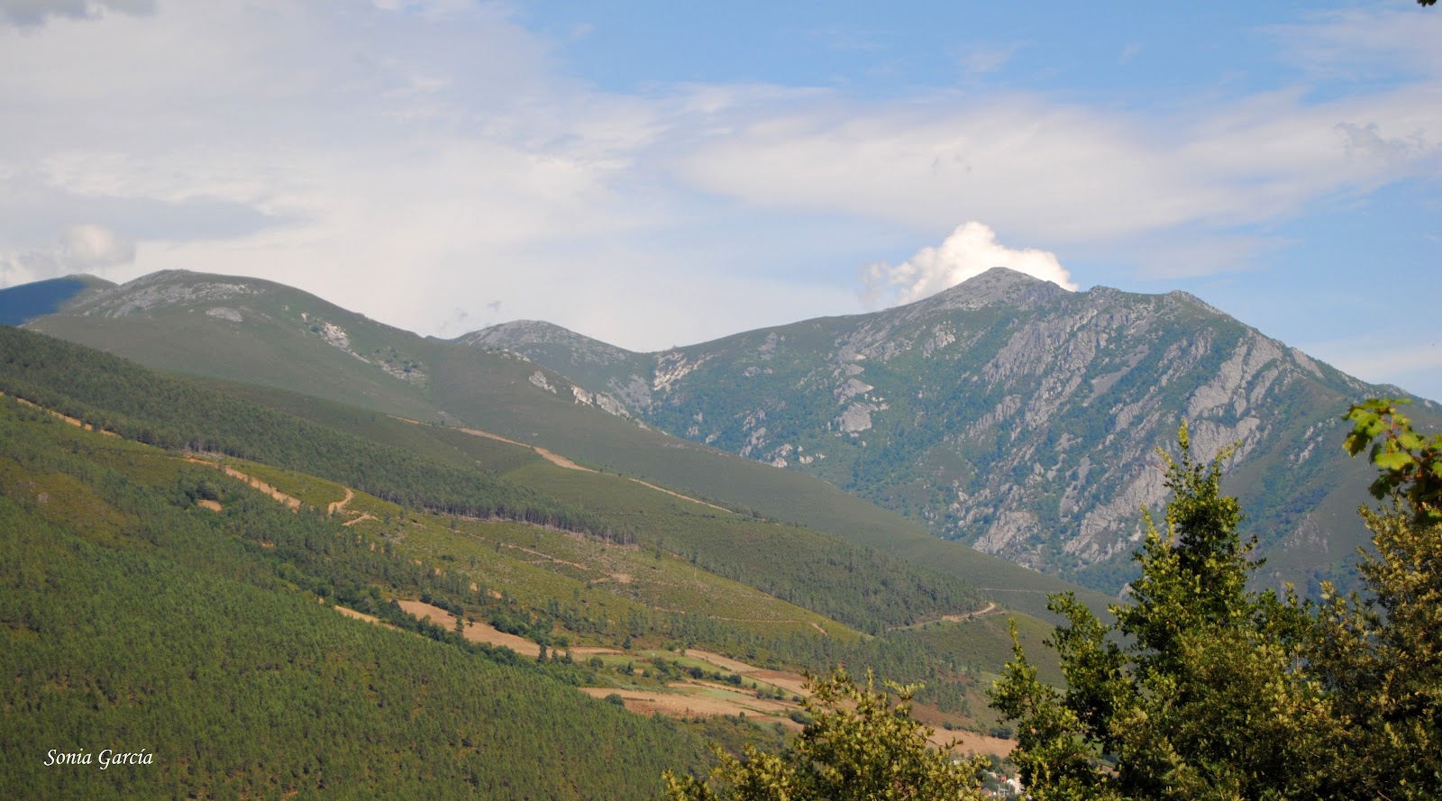 Justo antes de llegar a Santa Comba divisamos desde el camino parte de la Sierra del Bouzón que nos acompaña todo el camino paralela al río Ibias.